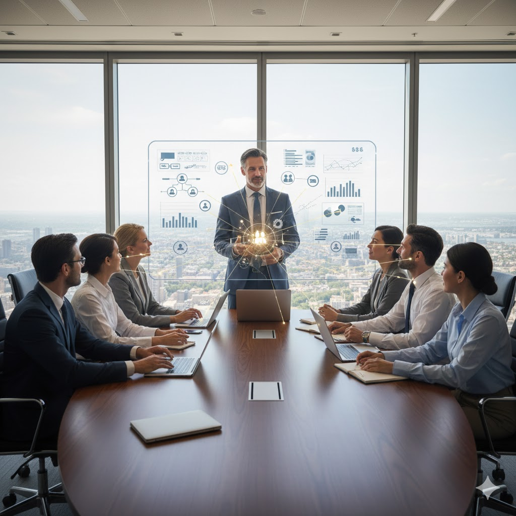 리더의 방향을 보여주는 장면입니다.
